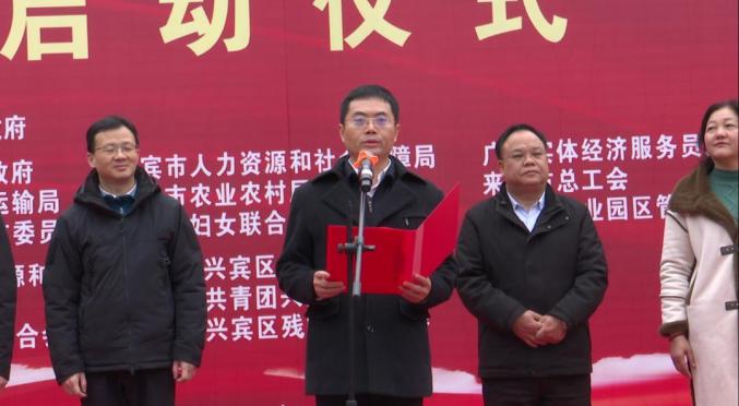 来宾市人民政府副市长陈勇峰出席启动仪式并宣布活动启动,来宾市人社局局长莫德业、兴宾区人民政府副区长韦善东在启动仪式上致辞,来宾市人社局副局长莫庆山主持此次启动仪式。