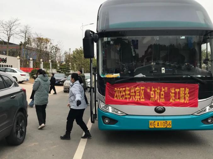 当天,兴宾区人社局根据企业岗位需求和劳动力技能特点,组织100余名农民工(其中脱贫劳动力46人)到兴宾区就业帮扶车间广西福泓科技有限公司开展“点对点”送工活动,助力企业节后复工复产。