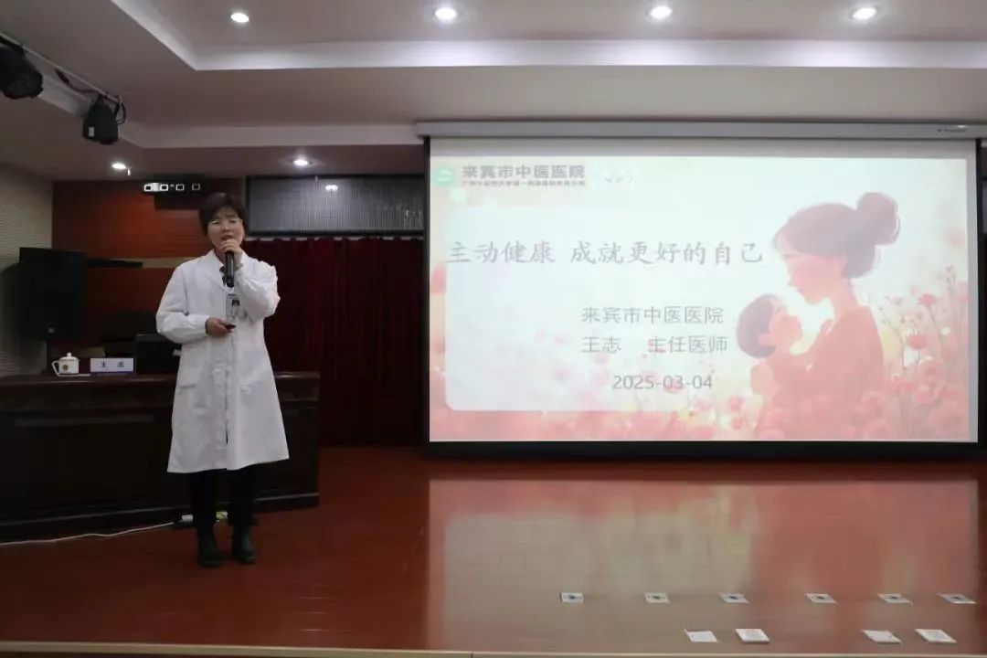 活动采用“理论授课+现场互动”的形式有序展开。农工党来宾市总支部党员、市中医院主任医师王志以中医养生与女性健康为核心,围绕女性独特的生理特点、四季养生诀窍以及常见亚健康问题的预防等内容,进行了细致地讲解,并分享了二十四节气茶饮、抗炎饮食疗法等极具实用性的健康知识。